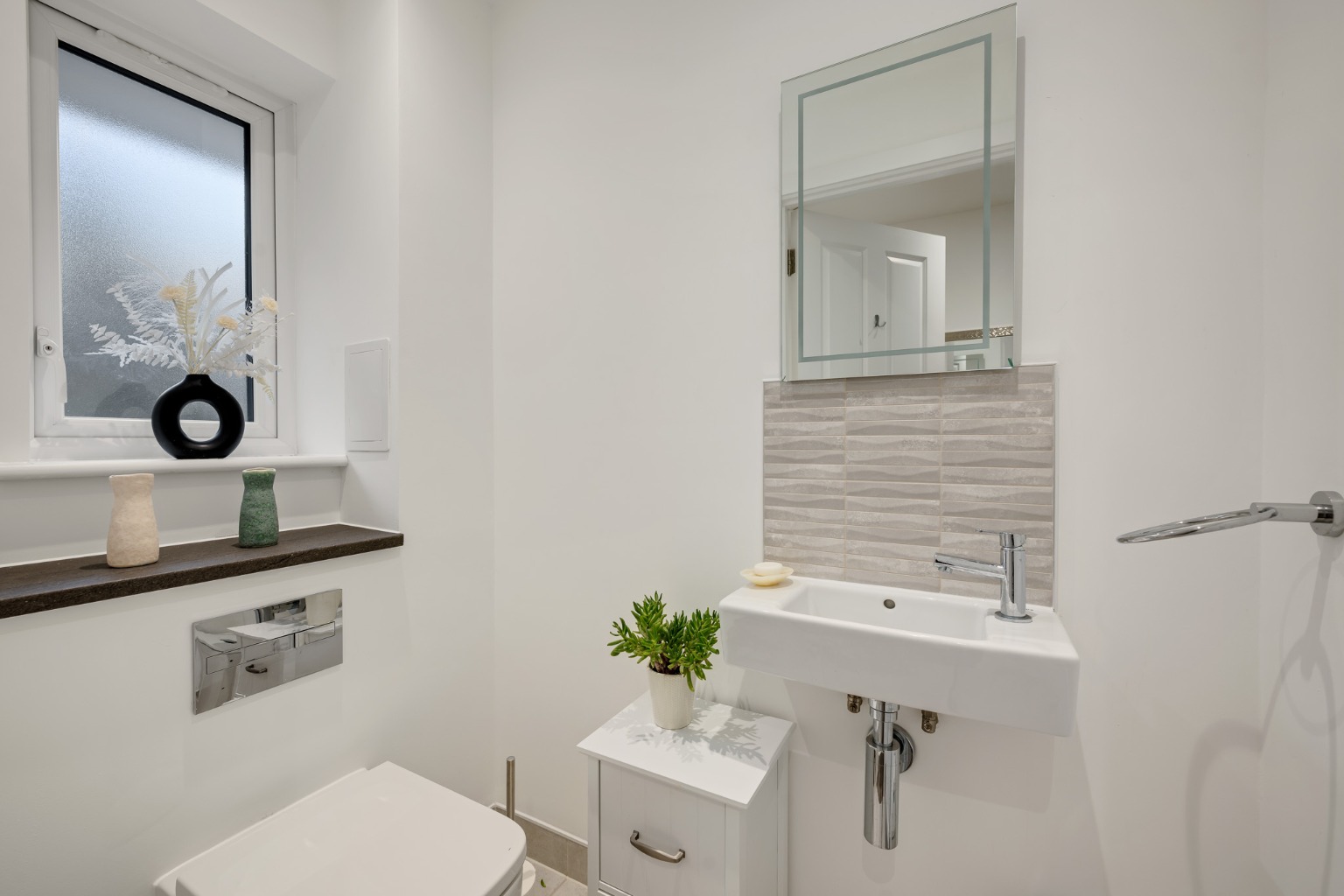 The ground floor welcomes you with the well appointed hallway, offering a WC & storage, alongside the generously sized kitchen / dining room and access out into the garden. Upstairs features a bright and airy reception room that also offers versatile space for relaxation, dining, or even a home office. The layout is thoughtfully designed to maximise natural light and create an inviting atmosphere throughout.